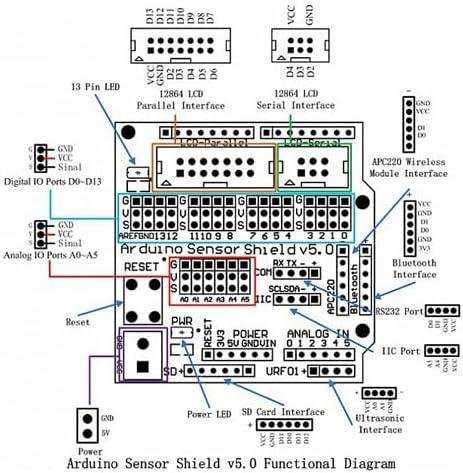 The Arduino Sensor Shield V5.0 provides an easy plug-and-play solution for connecting various modules such as sensors, servos, relays, buttons, potentiometers, and more, simplifying your Arduino projects.