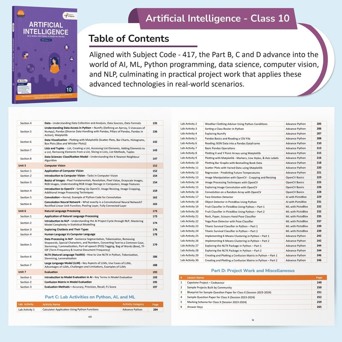 Step into the world of cutting-edge technology with Tech Tinkerer: Artificial Intelligence for Class 10, a comprehensive textbook tailored to the CBSE curriculum under Subject Code 417. This book equips students with in-depth knowledge of Artificial Intelligence, Python programming, and machine learning through an engaging blend of theory, hands-on lab work, and real-world projects. Designed to enhance critical thinking and problem-solving skills, it also delves into core AI domains like data science, AI ethics, computer vision, and natural language processing.