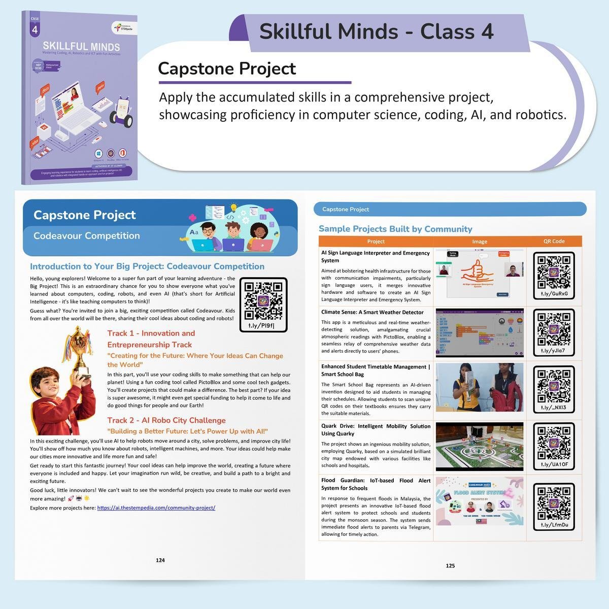 • Global Learning Opportunity: Includes participation in Codeavour worldwide AI, Coding, and Robotics competition aimed at students aged 7 to 18, promoting innovation and solutions aligned with the UN Sustainable Development Goals.