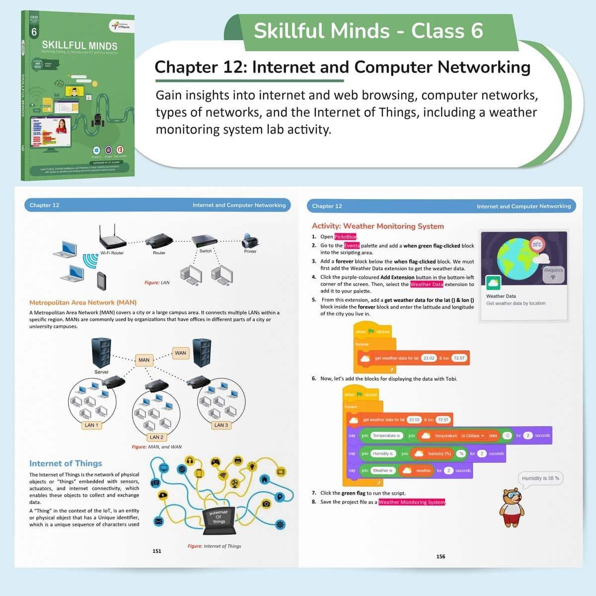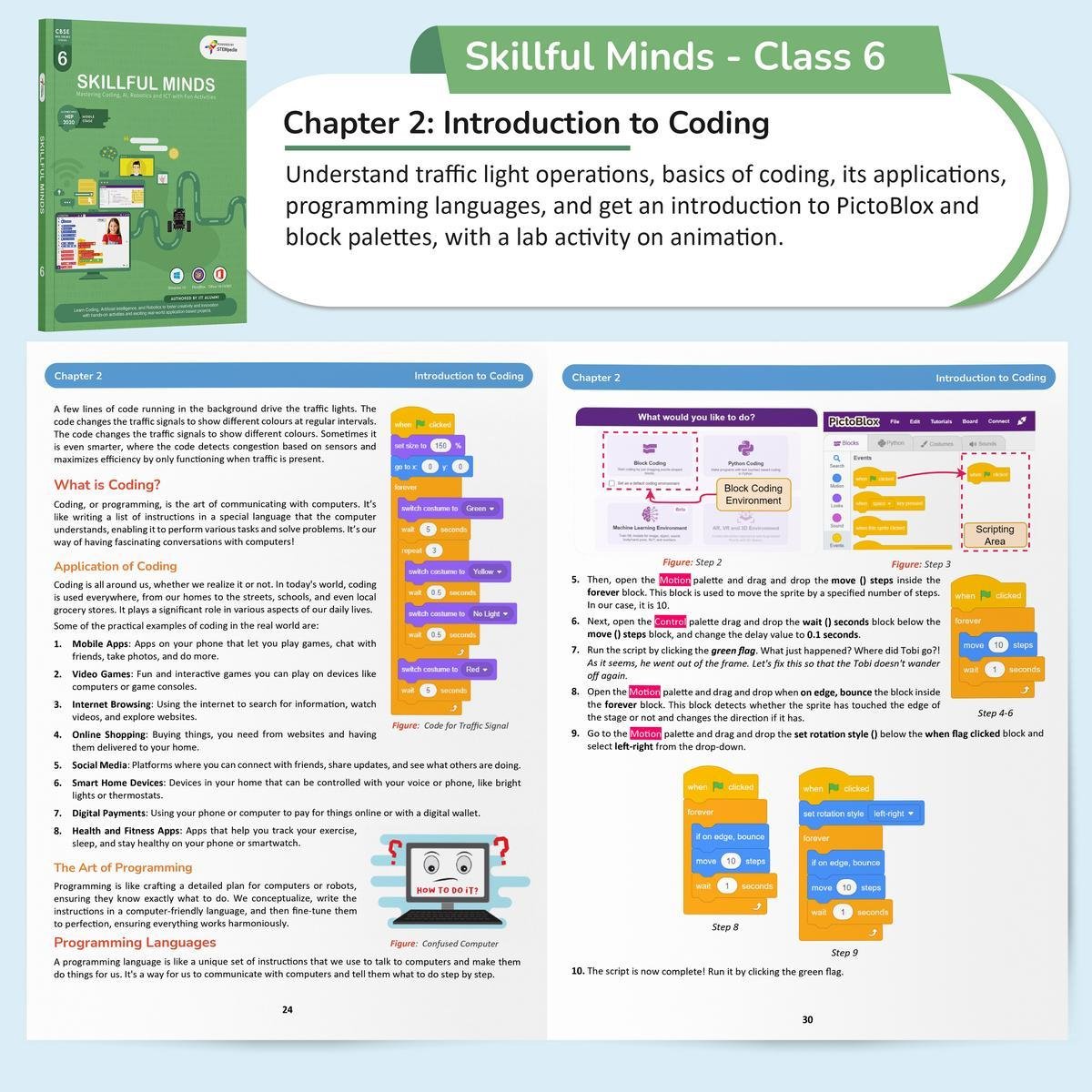 Skillful Minds for Class 6 offers a thorough and engaging journey into the world of Information and Communication Technology. This advanced-level book equips students with key digital competencies, including coding concepts, algorithm design, computer networking, and robotics, along with refined skills in word processing and presentations. The content is closely aligned with the CBSE curriculum and integrates the Class 6 Coding Skill Subject (Chapters 2), as outlined by the board.