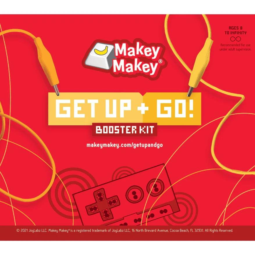 Thestrong>Get Up + Go! Booster Kit energizes your Makey Makey experience by encouraging movement-powered creativity. Designed to get you inventing on your feet, it expands your toolkit for building larger-scale, active projectshether it a floor piano, a hula hoop controller, or a stair-step soundboardy providing longer cables, conductive tape, and wearable accessories.